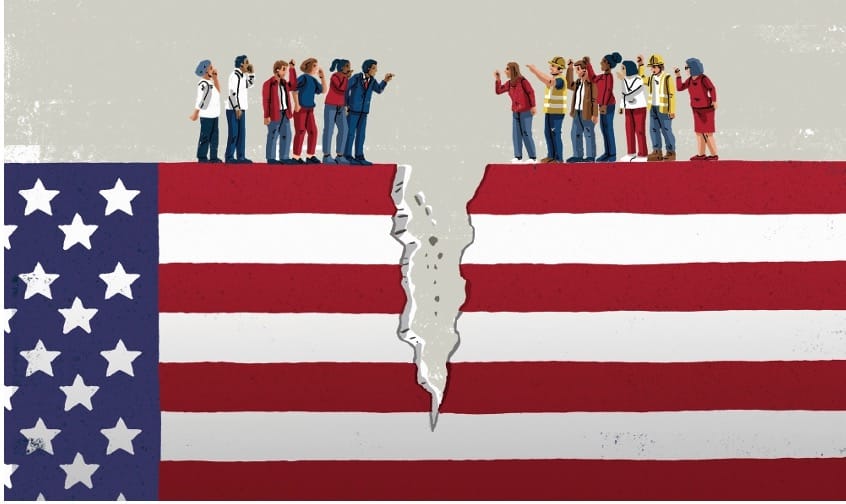Deep ideological splits over issues such as immigration, federal authority, and identity politics are said to fuel a growing distrust of institutions and erode consensus on fundamental governance.