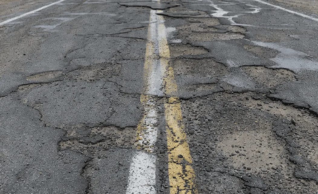 The report found that despite high gas taxes and transportation funding, drivers continue to face deteriorating pavement, potholes, cracked asphalt, and uneven road surfaces across the state.